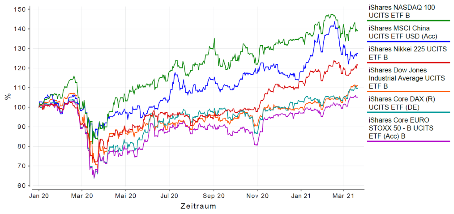 Nachdem die Aktienmärkte bis Mitte Februar 2021 stetig neue Höchststände erreicht hatten, setzten in den vergangenen Wochen Gewinnmitnahmen ein. Hiervon betroffen waren in erster Linie diejenigen Branchen bzw. Regionen – wie z.B. Technologie, Biotech/Pharma oder China – die in den vorangegangenen Monaten am stärksten gestiegen waren.