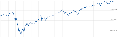 Zur Veranschaulichung des steilen Absturzes und der schnellen Erholung hatten wir als Referenzindex seinerzeit den S&P 500 ausgewählt. Den kurzfristigen steilen Aufwärtstrend von Ende März bis Ende Mai 2020 konnte der S&P 500 nicht ganz beibehalten. Er erreichte sein Vor-Corona-Niveau nicht schon Mitte Juli 2020, wie wir extrapoliert hatten, sondern erst vier Wochen später, Mitte August 2020! Und vom damaligen Niveau bei ca. 3.380 Punkten stieg er weitere knapp 18% bis auf einen neuen Höchststand von ca. 3.980 Punkten Mitte März 2021: