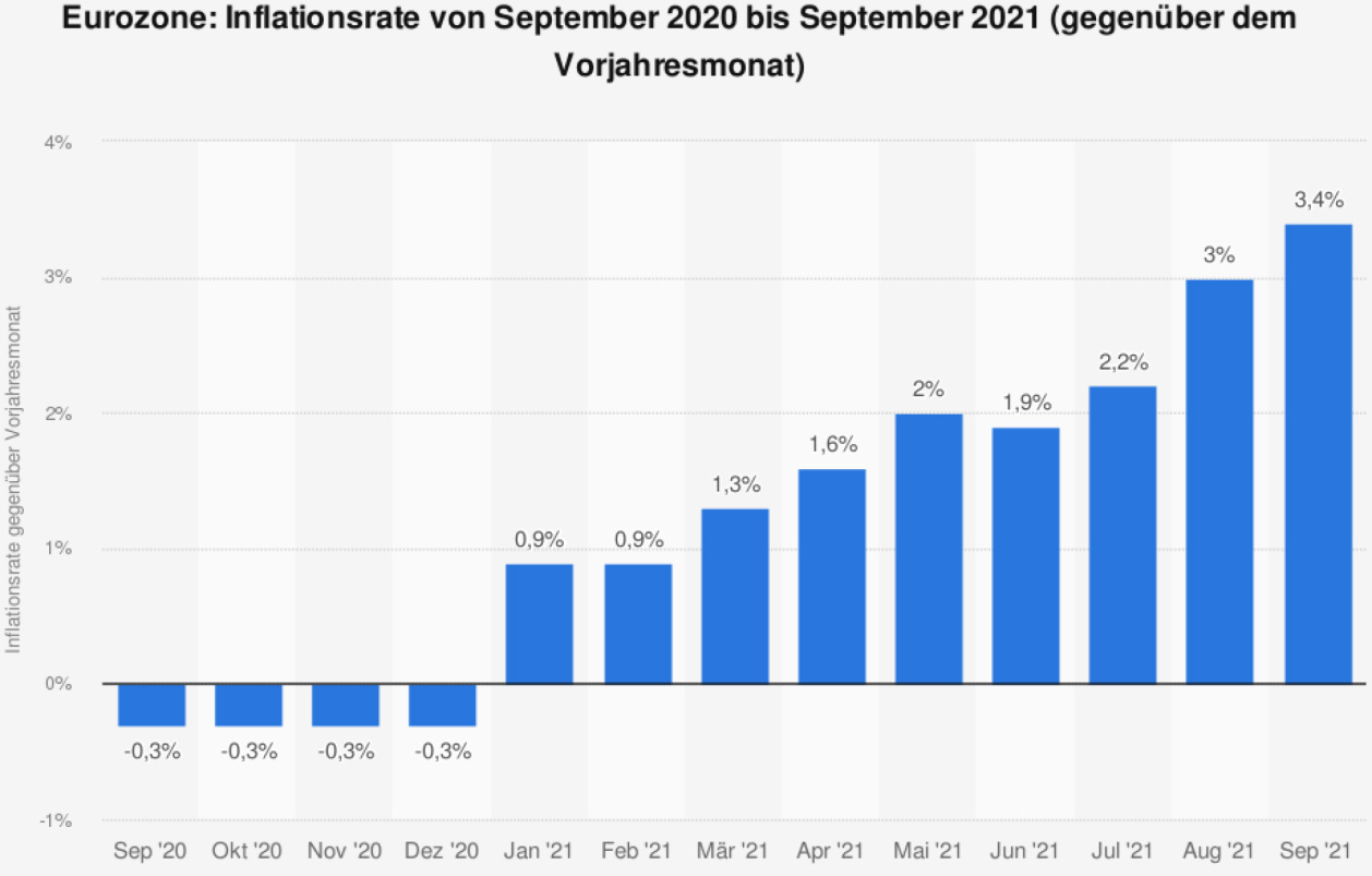 Der Anstieg der Inflationsrate auf 4,1% im Oktober 2021 ist in dieser Grafik noch nicht enthalten. Die mathematische Berechnung der 2-Jahres-Durchschnitts-Inflationsrate und die Aussagekraft derselben ändert sich hierdurch jedoch nicht.
